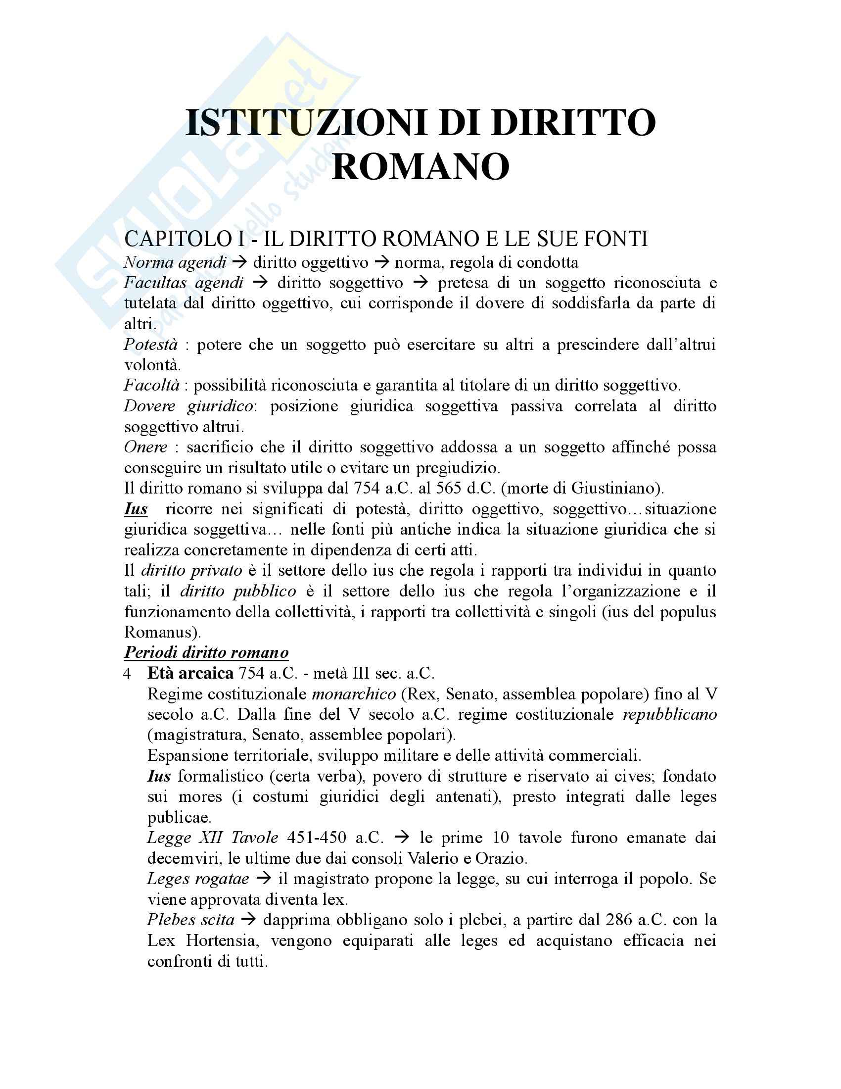 Riassunto esame Istituzioni di Diritto Romano, prof ...