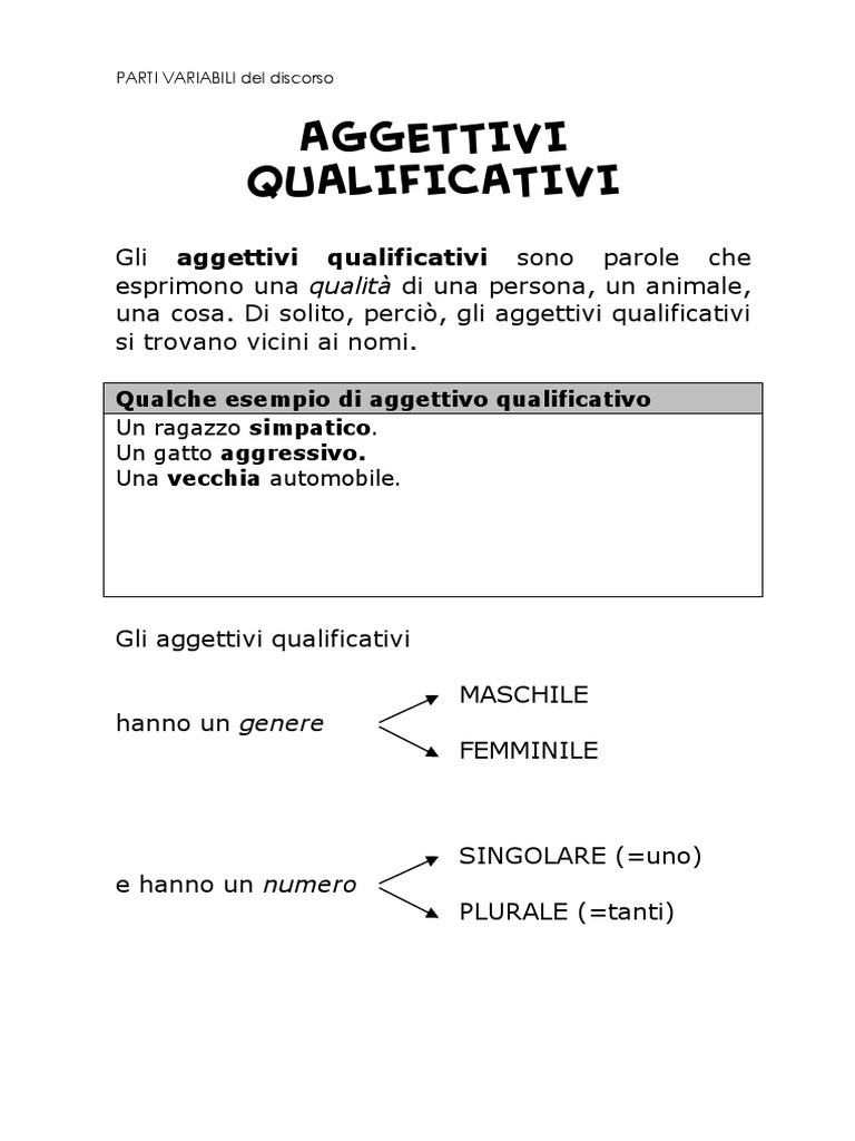 › watch5. Learn Italian Elementary (A2): Aggettivi possessivi ... Learn Italian Elementary (A2): Aggettivi possessivi - Possessive adjectives (pt 1)🇮🇹 Italian language, Italian culture, Italian lifestyle and Italian re... library.weschool.com › lezione › aggettiviL’aggettivo - aggettivi qualificativi e determinativi - WeSchool Gli aggettivi qualificativi (come bello, buono, feroce, giallo, alto e così via), che appunto danno informazioni su caratteristiche e qualità di un nome. Gli aggettivi determinativi (come suo, quella, tanti, dodici e così via), che indicano uan caratteristica specifica del nome cui si riferiscono. La fondamentale differenza che intercorre ...